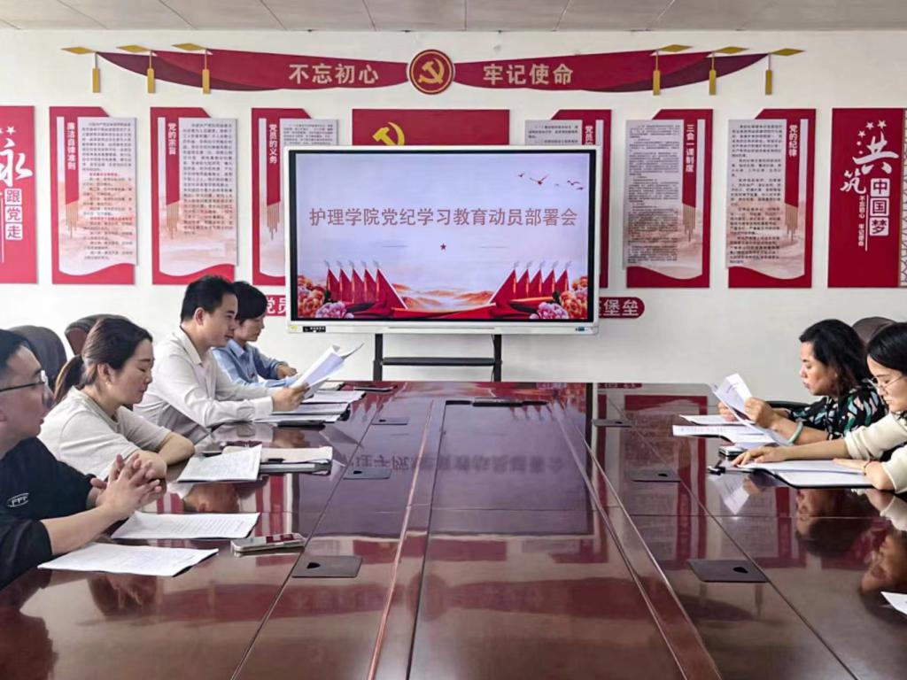 为深入学习贯彻习近平总书记关于党纪学习教育的重要讲话和重要指示批示精神,传达学习中央党的建设工作领导小组会议及省委、省卫生健康委党组有关会议精神,学习校党委副书记、校长李秋根在全校党纪学习教育动员部署大会上的讲话精神等,4月24日,葡京8883官网入口召开党纪学习教育动员部署会议,研究部署学院党纪学习教育工作。护理学院党委副书记陈敏主持会议。