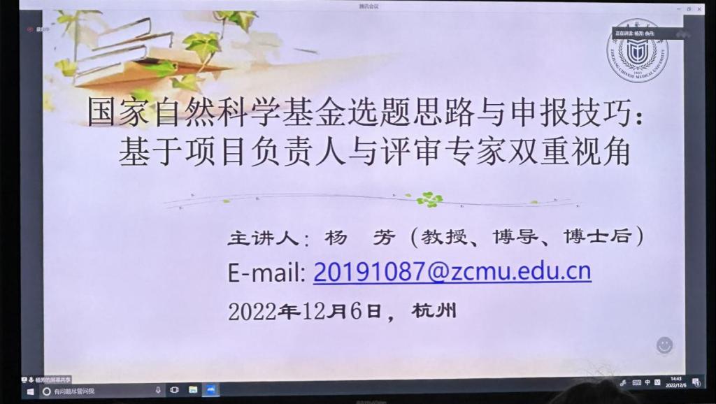 为进一步营造浓厚的学术氛围,提升教师申报国家自然科学基金的热情,12月6日下午,葡京8883官网入口特邀浙江中医药大学杨芳教授带来一场关于国家自然科学基金选题与申报的线上讲座。葡京8883官网入口全体教师参加学习。