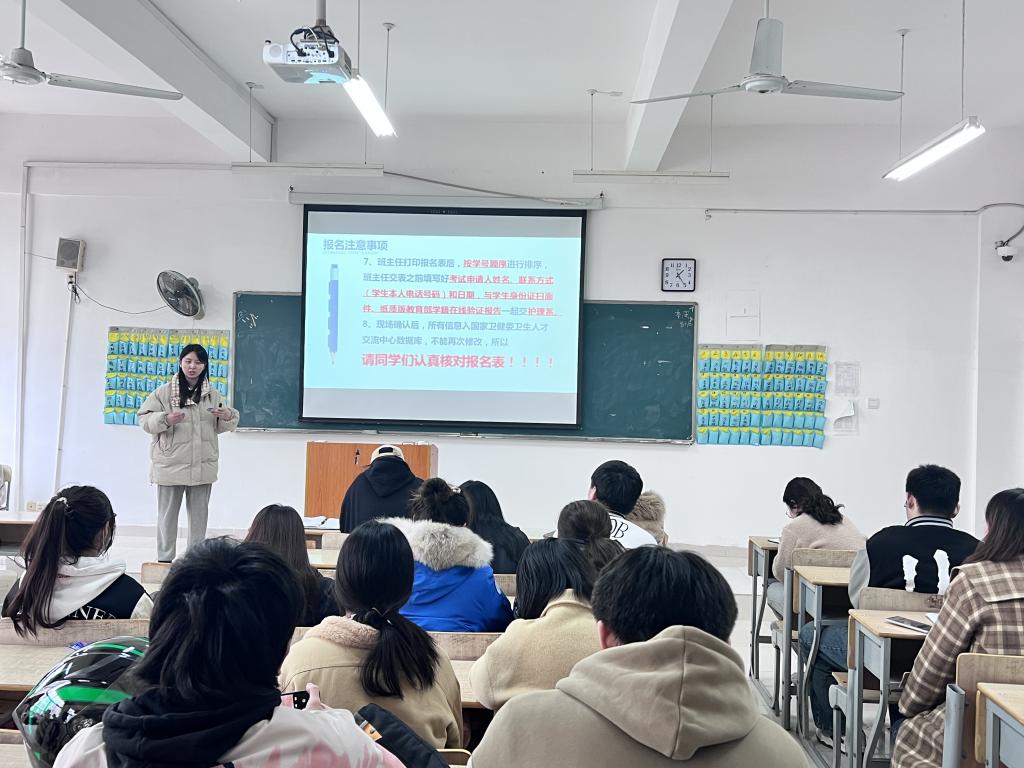 2024年全国护士执业资格考试报名工作将于2023年12月7日开始,根据江西省卫生健康委、江西省人力资源和社会保障厅《关于做好2024年度护士执业资格考试工作的通知》(赣卫人字〔2023〕36号)文件要求,为确保我院学生考试报名工作顺利进行,葡京8883官网入口在2023年12月6日中午12:50组织2021级高职护理班级、2022级中高职对接班级所有辅导员和各班班委代表参加了2024年护士执业资格考试报名指导培训。