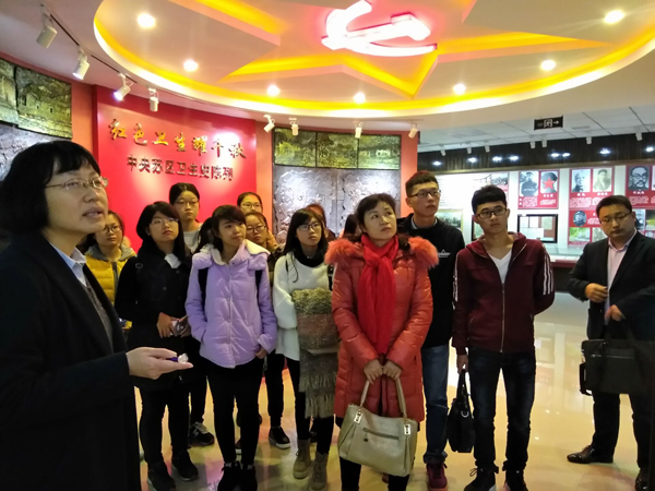 近日,江西卫生职业学院与赣南医学院联合办学的16职教本科合作实验班的同学们在护理系主任赵国琴、党总支副书记陈敏、辅导员邓仰龙三位老师的带领下,来到赣南医学院参观学习。