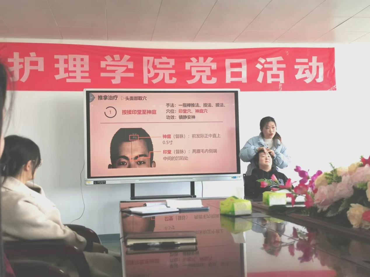张梅燕老师试讲的内容是推拿治疗失眠,主要从失眠的概述、头面部推拿和推拿的注意事项三个方面进行授课。张梅燕老师课前准备充分、教态大方得体,教风从容淡定,教学思路清晰明了。