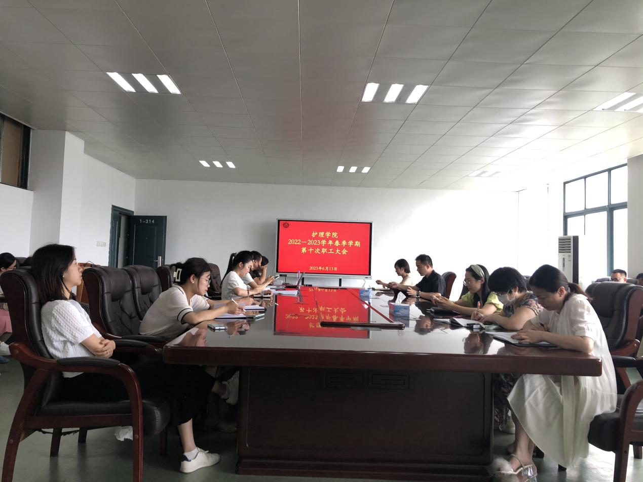 6月13日下午,葡京8883官网入口2022-2023学年春季学期第十次职工大会在1号实训楼314教室隆重召开。葡京8883官网入口全体教职工参加会议。葡京8883官网入口副院长胡颖辉主持会议。