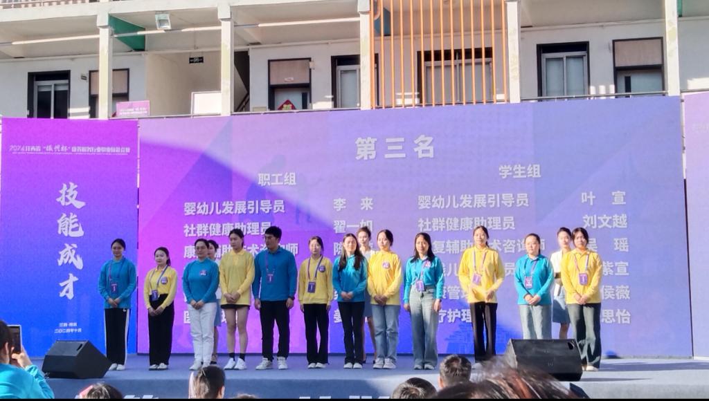 2022级护理学10班刘文越同学荣获社群健康助理员第三名,2023级护理学6班吴瑶同学荣获康复辅助技术咨询师第三名。葡京8883官网入口荣获“优秀组织奖”。