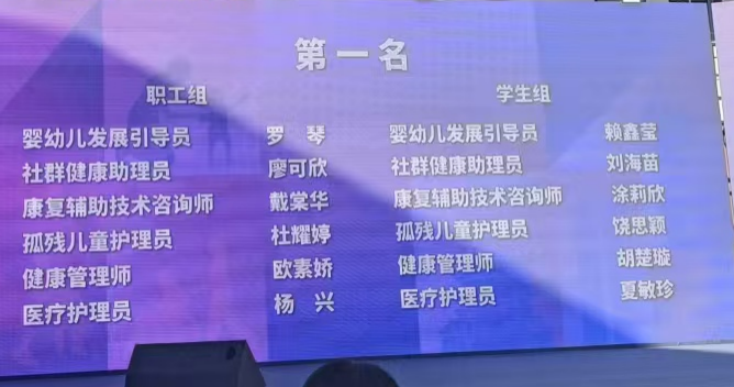 其中,2021级护理学2班夏敏珍同学荣获医疗护理员第一名。