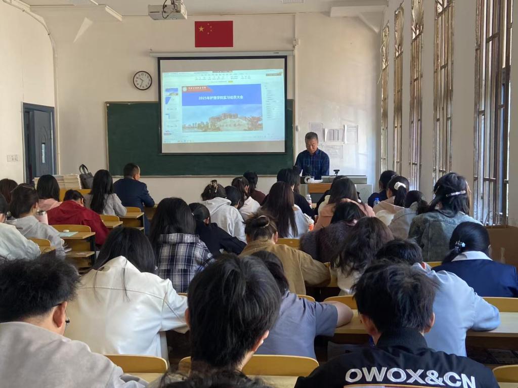 为进一步落实实习工作,2025年3月25日上午,葡京8883官网入口召集2023级高职护理6个班在青山湖校区开展了护理线上线下相结合的实习动员大会。出席本次大会的有教务处实习实践科科长王向东、学工处科长沈林、葡京8883官网入口党委委员黄兰、葡京8883官网入口实习干事刘思、23级高护班辅导员及全体学生。