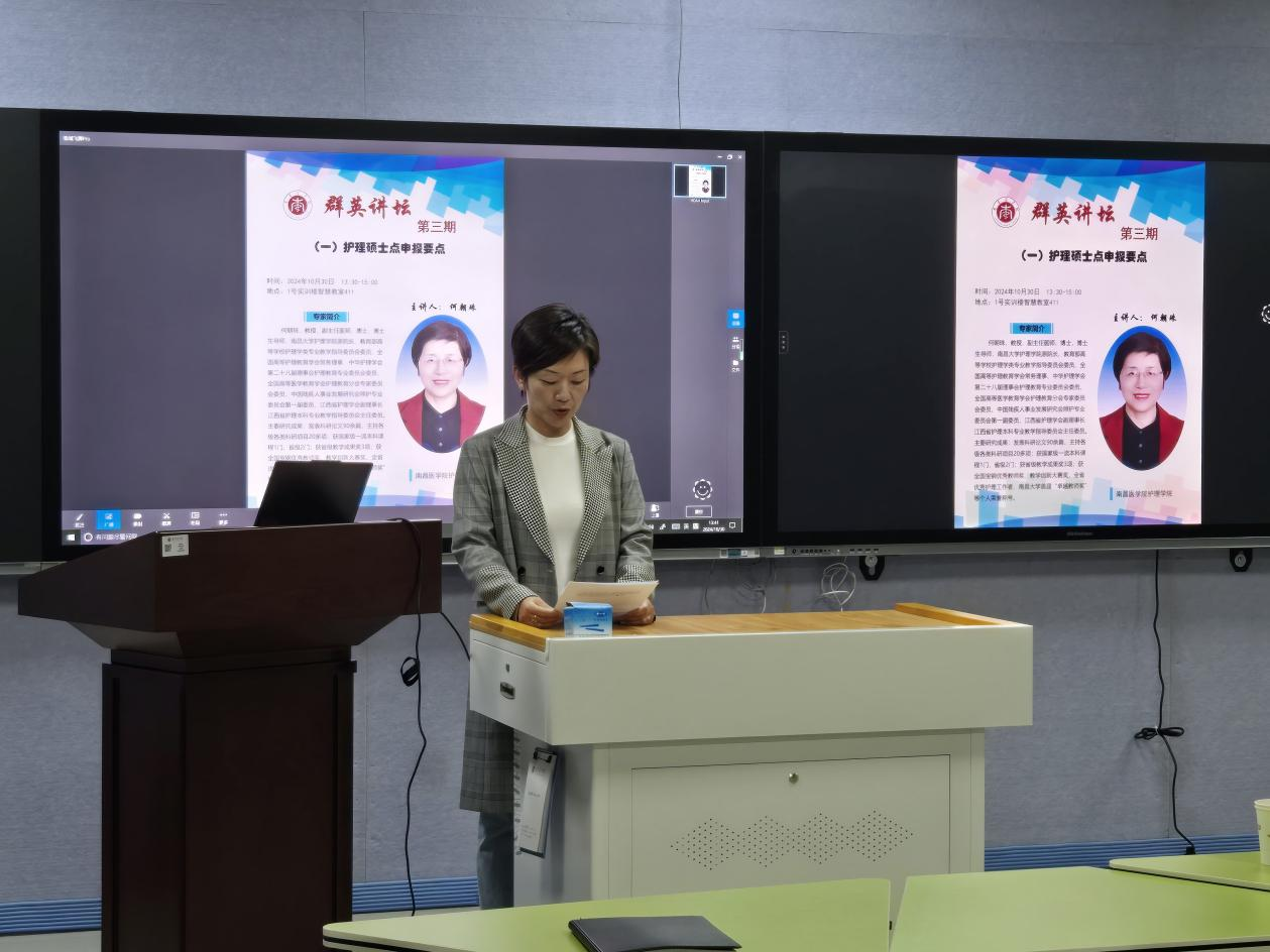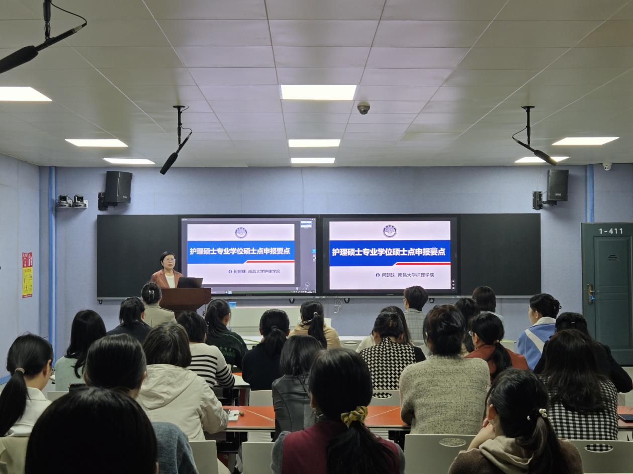 首先由南昌大学葡京8883官网入口原院长何朝珠教授以《护理硕士专业学位硕士点申报要点》为题作学术报告,从申报背景与现状、申报条件与要求、申报材料准备与撰写技巧、申报经验做法及建议四个方面详细的讲述了如何进行护理硕士点的申报与建设。讲座内容重点突出、内容丰富、案例详实,讲解深入浅出,为我院护理硕士点的建设提供了宝贵的启示与丰富的资源。